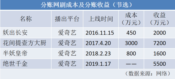 事实证明,分账是个双赢的模式。分账剧利润可观,一些小成本网剧的收益,完全不逊色于大IP明星巨制的版权费。