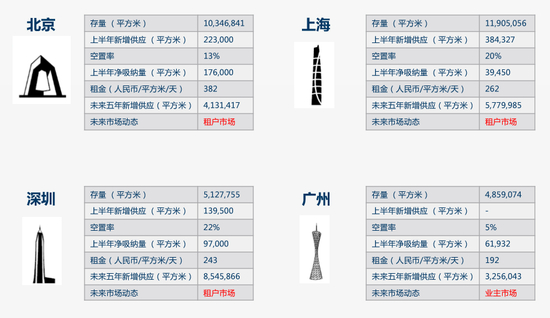 一线城市写字楼状况 数据来源:戴德梁行