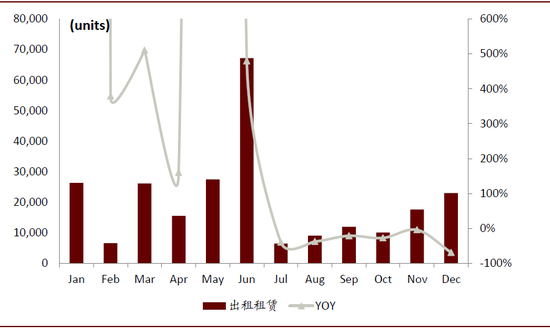 图表: 2019年新能源汽车出租租赁上险量与增速