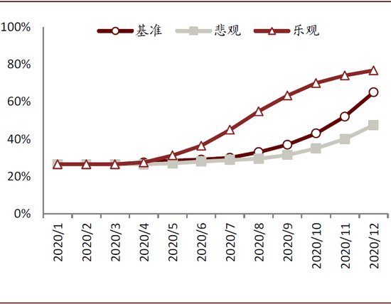 图表: 中国2020年5G手机渗透率情景分析