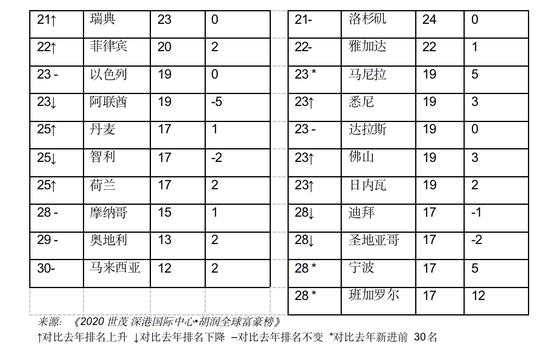 ↑对比去年排名上升 ↓对比去年排名下降 –对比去年排名不变 *对比去年新进前30名