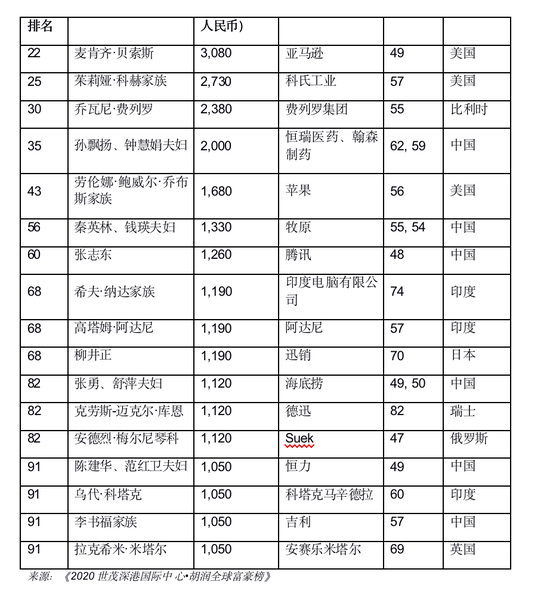 来源:《2020世茂深港国际 中心•胡润全球富豪榜》