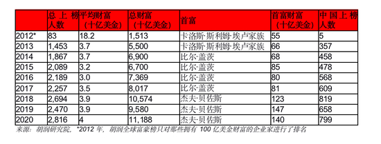 来源:胡润研究院,*2012年,胡润全球富豪榜只对那些拥有100亿美金财富的企业家进行了排名