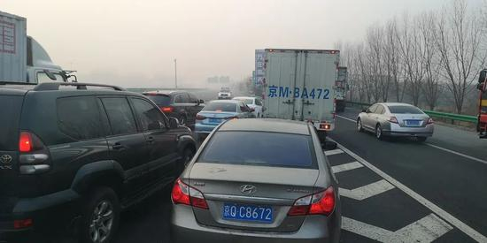 老司机都知道,北京的地势是西北高东南低,大早上起来出北京向东向南容易有雾。司机师傅紧赶慢赶总算上了京台高速,跑到河北万庄服务区,河北警察用小喇叭喊着: