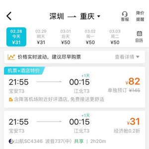 第一波廉价机票潮杀到:今天,我从深圳飞重庆,只需71元