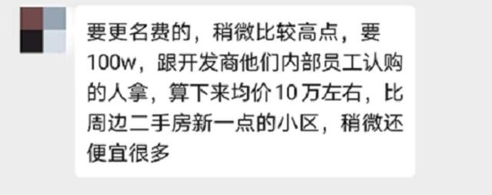 日前,有网友在社交平台上爆料,深圳某区域三个新盘项目,对外号称售罄,实际现在转为内部消化,要缴纳所谓的喝茶费(即更名费)才能买房。而这笔喝茶费,最高竟然高达100万。