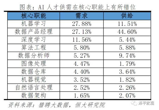 猎聘大数据显示,过去五年全国人工智能和大数据人才需求呈快速增长态势,年复合增长率超70%,但相关领域的人才供给远不能满足市场需求。腾讯研究院《全球人工智能人才白皮书》显示,全球AI领域人才约30万,而市场需求在百万量级。猎聘大数据研究院以2015年Q1为基准点,用此后每个季度发布职位数与2015发布的职位数相除,结果显示,截至2019年Q2,人工智能与大数据领域发布岗位数增长了11.75倍,年复合增长率超过70%,明显高于互联网行业,可见人工智能领域的人才稀缺性更强。从供给端看,目前中国真正开设人工智能专业的院校不足2%,行业内部自发的人才培养还没有成体系,机器学习、深度学习、图像处理、数据仓库、机器视觉、自然语言处理等领域的人才供给相对不足,院校端和产业端高质量人才供给水平远远不能满足市场对人才的需求。