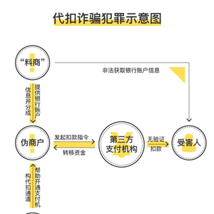 也就是说,诈骗分子设立一个外表合格的商户,通过伪造相关材料,即可开通代扣渠道,将毫不知情的银行卡持卡人的资金转移。