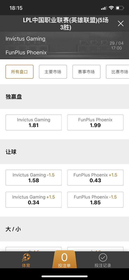 以当天一场英雄联盟比赛为例,其玩法和传统赌球玩法相似,玩家除了根据双方赔率进行胜负关系下注外,还能就每局比赛进程中“谁率先击杀对方”、“谁拿第一条小龙”以及比赛时长、双方击杀总人数等诸多选项进行下注。