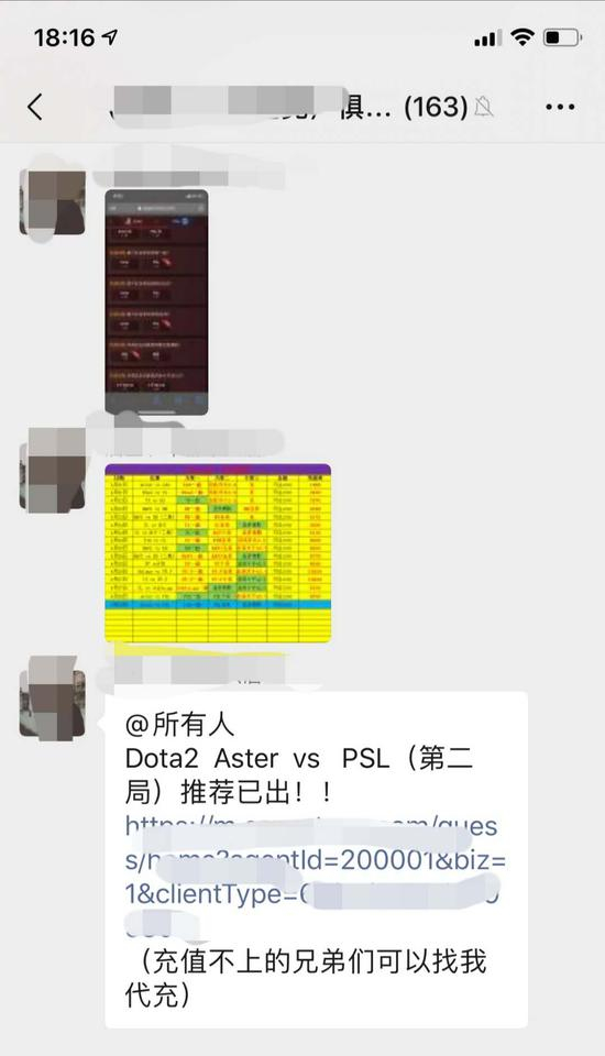 4月22日,记者以玩家身份联系上一位博彩小代,对方简单咨询来意后,立刻热情地发来当天比赛双方的赔率以及赛事预测,同时将记者拉进一个名为“LPL电竞俱乐部”的微信群。
