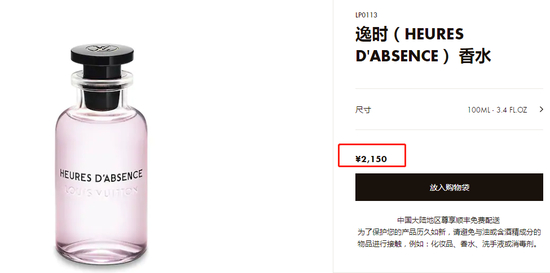 对于李佳琦推荐的两款LV香水,每经记者注意到,不少粉丝表示支持会购买,但还有部分粉丝直言“买不起”,只敢“隔着屏幕想象一下味道”。通过查询LV官网,每经记者看到逸时香水和浩瀚香水的售价均为2150元/100ML。