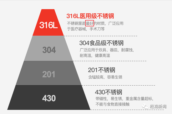 对于316L不锈钢是否果真是不锈钢中最好的材质,经观新闻查阅了大量论文进行论证,但这一等级评定着实有待商榷。