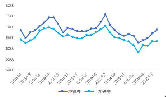 北京市地铁房与非地铁房套均价格对比