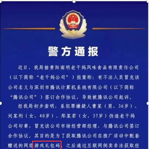 根据警方通报,三名犯罪嫌疑人伪造老干妈印章与腾讯合作的目的,是为了获取腾讯公司在推广活动中配套赠送的网络游戏礼包码,之后再在网上倒卖,从而获益。有行业人士测算,事件涉及到的三人通过礼包码获利或可达百万级别。