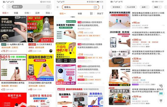 7月17日至24日,记者在淘宝、京东、拼多多、抖音、快手等平台检索发现,可用于偷拍的微型摄像头大量在售。