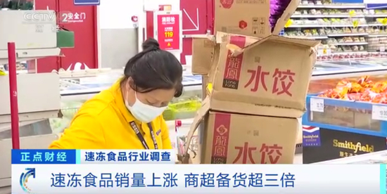 在一家速冻食品企业的车间,记者看到生产线上十分繁忙。据企业生产负责人介绍,目前这个厂区的11条生产线已经满负荷运转,一天产量在200吨左右,而他们在全国不同地区的5个工厂,现在也全都按最大化产能生产。订单集中的时候,他们会三班倒,24小时不间断生产。