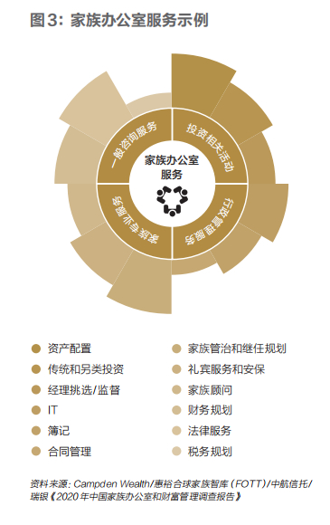 另一方面,这些机构在商业和运营方面,给予独立办公室支持。比如IT系统、专业知识和商业运营培训、全球资讯等,以提高家族办公室服务水平,降低其运营成本。