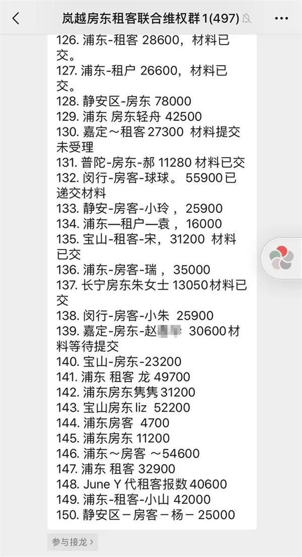 李静加入了“岚越房东租客维权群”,群内人数近五百人,遍布上海各区。