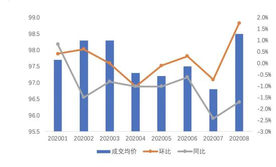 同时,尽管8月租金水平环比稳中有升,但同比保持下降趋势。根据贝壳研究院的数据,2020年8月杭州市平均租金为98.5元/㎡,环比上涨1.8%,同比下降1.7%。从环比来看,4月到7月租金下降和上涨幅度在1.0%以内。从同比来看,1月到8月,由于疫情影响,租金持续保持下降的趋势。