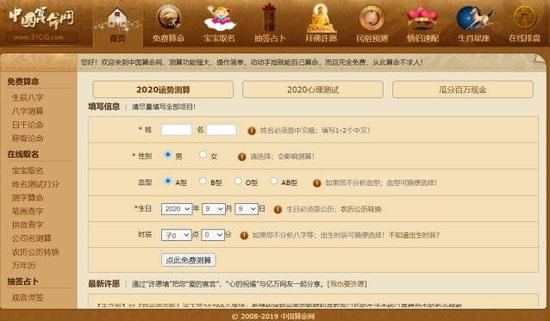 伴随着互联网的发展,付费短信模式逐渐被扎堆涌现的算命网站替代。只需要输入出生日期、姓名、性别等基础信息,便可知晓当年运势。