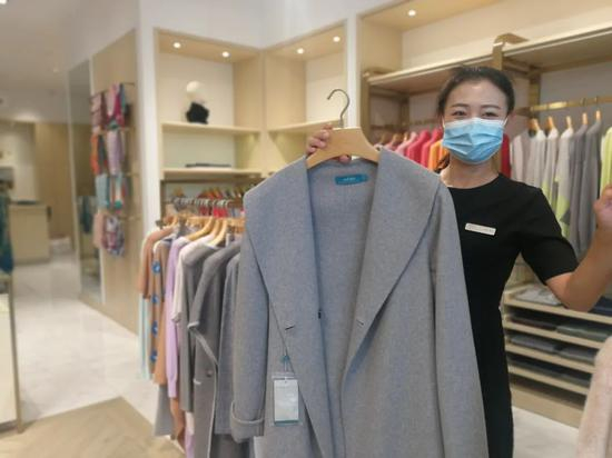 图为鄂尔多斯集团销售员展示出口产品。本报记者 佘 颖摄