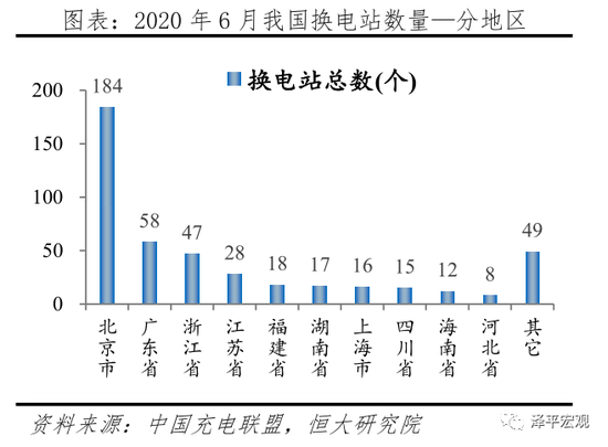 据中国充电联盟披露,截至2020年6月,我国换电站保有量452个;按企业分,奥动新能源222个、蔚来136个、伯坦科技94个;按地区分,TOP10省市分别为北京市184、广东省58、浙江省47、江苏省28、福建省18、湖南省17、上海市16、四川省15、海南省12、河北省8。