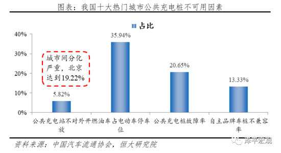 当前公共充电领域存在四类痛点:1)部分充电桩不可用;2)可用充电桩充电较慢;3)快充桩存在安全隐患;4)建桩数量和充电利用率很难平衡,持续亏损削弱运营商建桩积极性。以部分公共桩不可用为例,2019年8月,中国汽车流通协会发布的《2019新能源汽车消费市场研究报告》披露:针对新能源用户十大热门城市(北京、上海、深圳等)公共充电桩调查显示,主要有四类问题导致部分公共充电桩不能用:1)5.8%的公共充电桩不对外开放,且各城市分化严重,北京这一比例高达19.2%;2)35.9%的公共充电桩停车位被燃油车占领;3)20.7%的公共充电桩发生故障;4)13.3%的自主品牌充电桩相互不兼容。