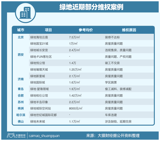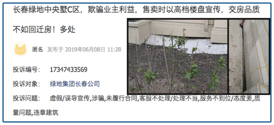 在全国各地,绿地房屋质量问题的维权案例越来越多,有把公寓栋住宅卖的,有承诺的学区跳票的,还有小区已经建成多年,最后发现卖出去的车库是违建需要被拆的,除了长春,西安也是被坑的大户。