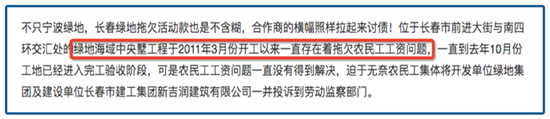 其实这些工人的工资也不过300万而已,9月初被媒体曝光后,绿地才把今年6月以前的结清了。