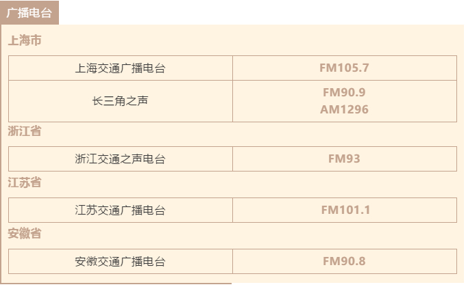 如上海G40沪陕高速长江隧桥及G1503上海绕城高速高东入口段、G2京沪/G42沪蓉高速江苏方向安亭段、G15沈海高速朱桥段、G50沪渝高速徐泾段等;