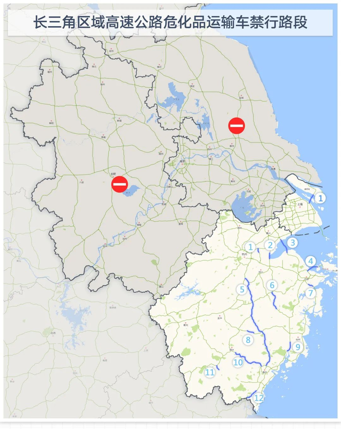 长三角区域高速公路对危险品运输车辆实施禁行管制措施的有: