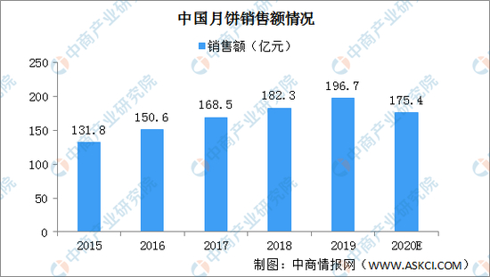 那么,今年的月饼市场销售情况究竟如何?据艾媒、中商产业研究院数据显示,今年的月饼销售规模预计相比去年减少20多亿元。2015年月饼销售额仅131.8亿元,2019年增长到196.7亿元,而2020年受疫情影响,不少企业效益变差,取消或压缩中秋公司福利,整体上预计将减少到175.4亿元。
