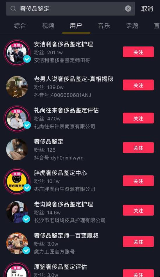 比如在抖音、微博上以“奢侈品鉴定师”为关键词进行搜索,可以发现市面上存在大量不同水平的鉴定师。抖音上的一些鉴定账号内容虽为鉴定,但为了满足观众的猎奇心理,难免有演绎创作的成分。而微博上的鉴定师有些自带“国字头”证书,有些已经在行业里积累了足够影响力。