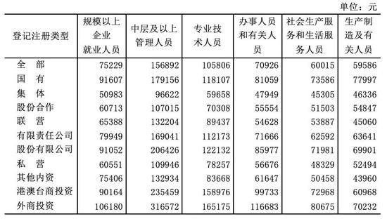 先从国家统计局今年发布的一张表格开始,它反映了规模以上企业分岗位就业人员的年平均工资情况。