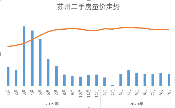 来自贝壳研究院的统计数据显示,苏州二手房价格自2019年下半年以来,保持相对平稳状态。其中,9月份,苏州二手房成交量环比8月下滑约6%,二手房价格指数则环比微跌,同比也小幅下跌1.2%。此外,去年至今,买、卖双方成交周期走势呈延长态势,今年9月,买、卖双方成交周期分别为44天和125天,处在2019年以来的高位。