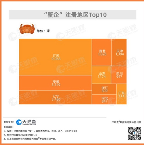 值得注意的是,企业名称或经营范围同时包含“阳澄湖”和“大闸蟹”的企业数量超过1200家,占全国16.6%。