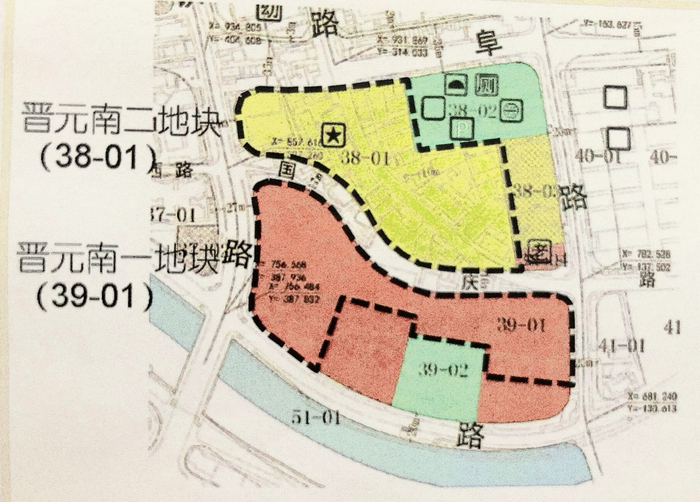 39-01地块东至晋元路、南至规划绿地和光复路、西至乌镇路、北至国庆路,地块面积为1.3914万平方米,容积率为2.63,地上建筑面积3.6594万平方米,规划为商业文化混合用地,其中,商业≤70%,文化≥30%。