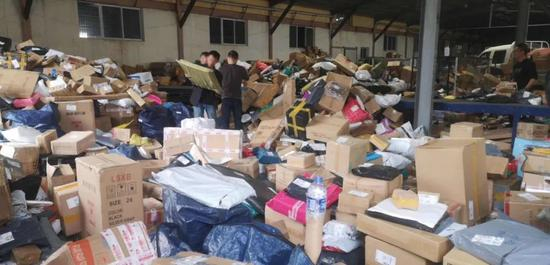 10月,中部省份某快递网点罢工,现场无人分拣的包裹堆积如山