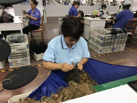 某假发厂里工作的女工 图源视觉中国