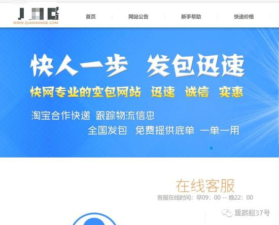 ▲某空包网站上写着与淘宝合作快递。网页截图