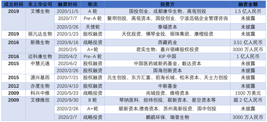 非上市公司中,艾博生物、斯微生物、艾棣维欣均获得了超过1亿人民币的融资额。