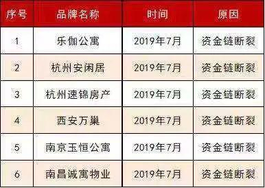 仅去年7月这一个月内,就有6家公寓机构出现重大问题,原因清一色的都是“资金链断裂”。
