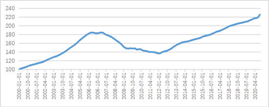 图2、S&P/Case-Shiller U.S. National Home Price Index(Jan 2000=100)
