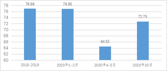 从工业生产来看,依据美联储圣路易斯分行的数据,2020年10月美国工业生产指数总指数环比上升1.1%,达到103.2054 (2012 = 100),为2015-2019年月度均值的97.61%,为2018-2019年月度均值的94.66%。从设备使用率来看,受疫情冲击,2020年4-5月是低点,月度均值为64.52%,到了10月份上升到72.75%,相比2015-2019年的月度均值下滑了5.5%。与2020年年初1-2月份相比也下滑了大约5.4%。因此,虽然目前美国经济中的生产能力有明显恢复,但与正常水平相比,仍有不小的下滑(图3)。