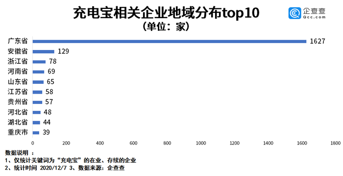从企业成立时间来看,企查查数据显示,过去十年来,我国充电宝相关企业的注册量不断增长。2019年新注册了699家,同比增长64.1%,是过去十年中注册量最多的一年,相比十年前(2010年)数据增长了46倍。