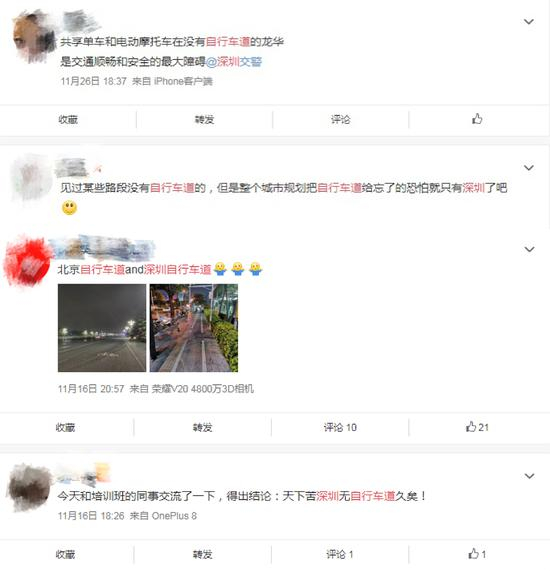 在知乎“在深圳骑自行车上下班是什么体验?”问题下,84个回答几乎“清一色”给出“差评”。在微博上,有关于深圳自行车道的吐槽更是只多不少。