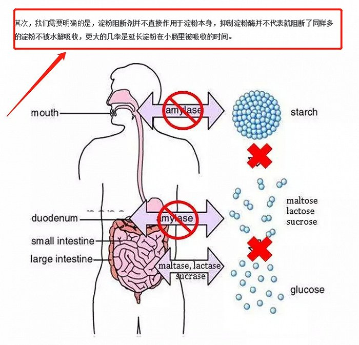 大G在文章里指出,“抑制淀粉酶并不代表阻断了同样多的淀粉不被水解吸收,更大的几率只是延长了淀粉在小肠里被吸收的时间。”