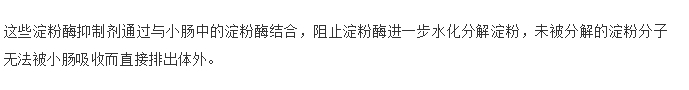 而开头提到的白芸豆酵素发挥作用的也正是其提取物中一种名为“α-淀粉抑制酶”的成分。淀粉酶抑制剂有什么作用呢?大G在文章里是这样解释的: