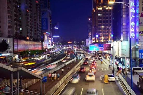 岗顶的商业街人流密集,霓虹五光十色,这里包裹着小袁的“城市梦”。/图虫创意