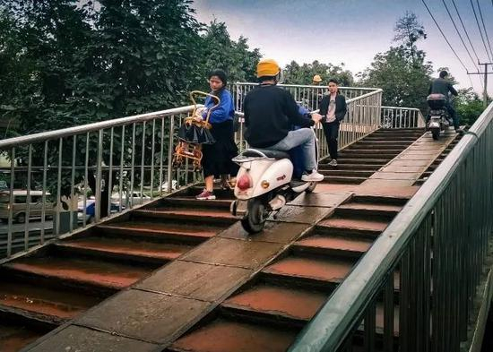 上上下下的天桥,给外卖骑手加大了送餐难度。/图虫创意